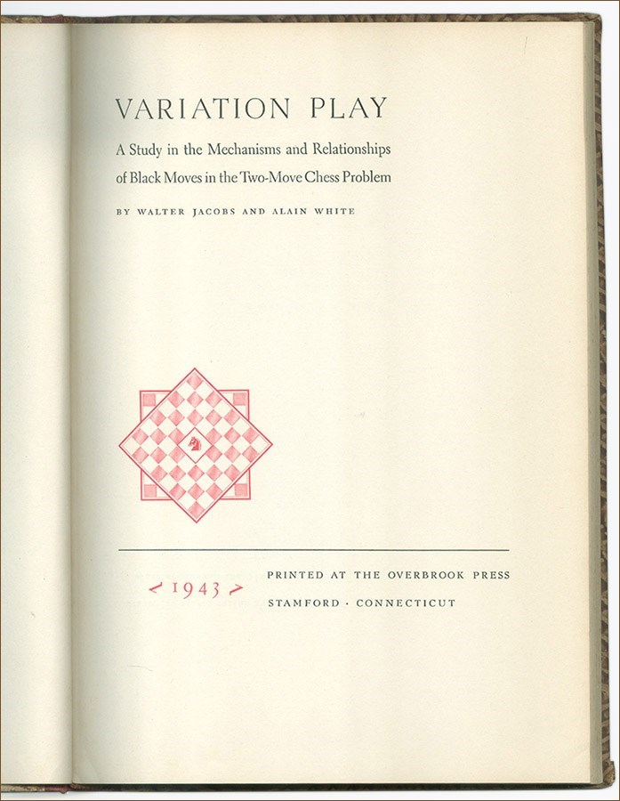Jacobs, Walter / White, Alain C.: Variation Play. A Study in the Mechanisms and Relationships of Black Moves in the Two-Move Chess Problems.
