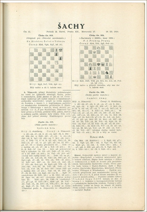 Narodni osvobozeni 1934 (chess columns only).