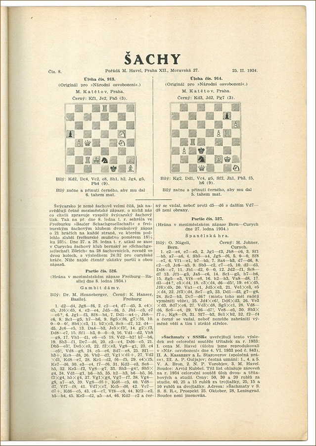 Narodni osvobozeni was a daily newspaper published in 1924-1939, 1945-1948. The chess column was published weekly.