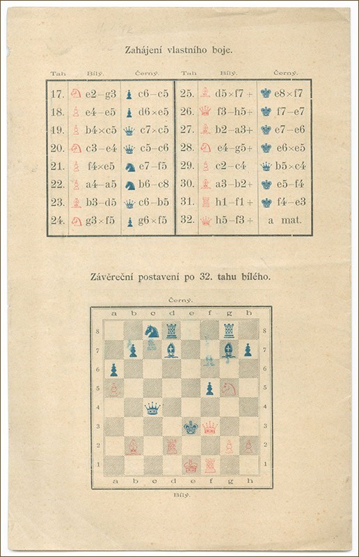 (Dobrusky, Jan): Partie sachova provedena se zivymi figurami na Narodopisne vystave ceskoslovanske dne 15., 22., 28. and 29. zari 1895.