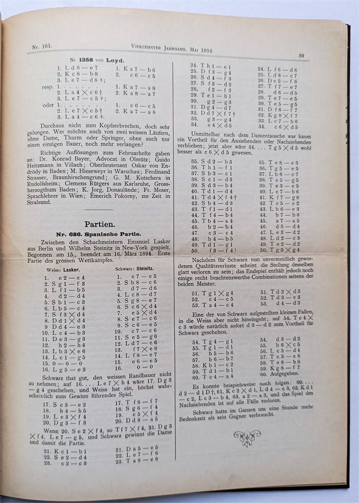 Monthly magazine for entertainment and education, featuring a dedicated chess department. Edited by Hermann Lehner with the assistance of numerous contributors.