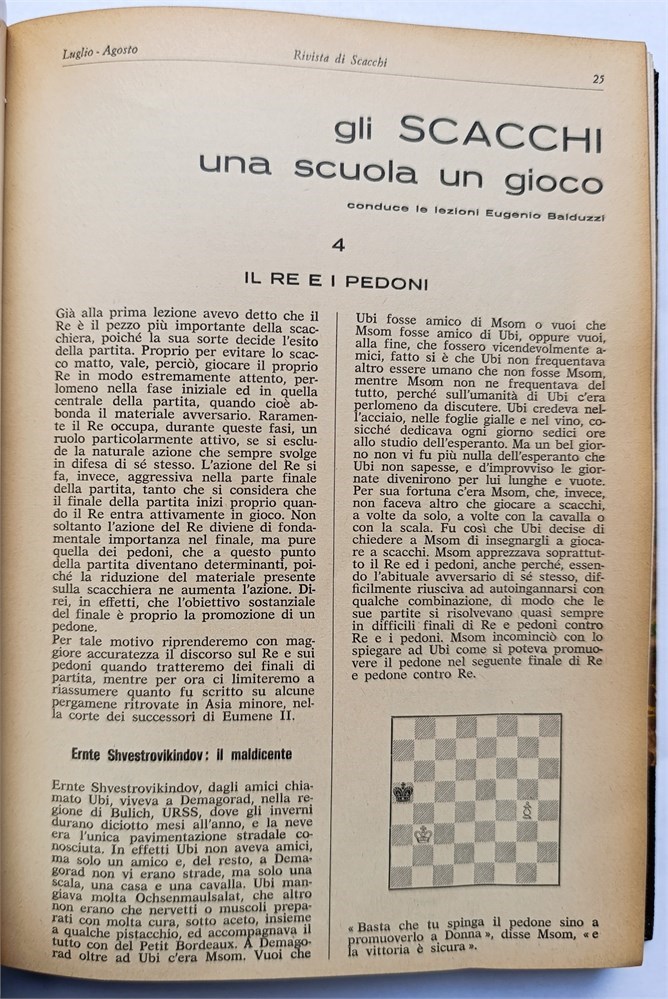 Issue 10 (January 1974) - 44 pages. An 8-page supplement (Chess – a school, a game, pages 73-80) is inserted after page 18, followed by page 27. An additional 4-page supplement (tournament regulations for “Torneo Vacanze”) is also inserted, which is not included in the overall pagination.