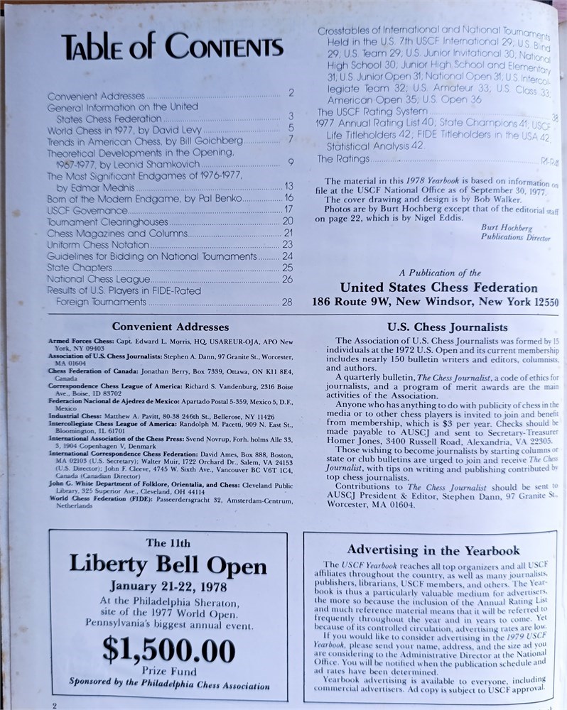 Yearbook USCF 1978: 42 pages + 41 pages (ratings). Publications Director: Burt Hochberg.