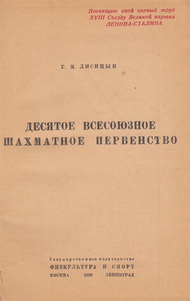 Fizkultura i Sport, Leninigard/Moscow 1939. LN 5566. 1) Levenfisch 12½/19; 2-3) Konstantinopolsky & Ragozin 12.