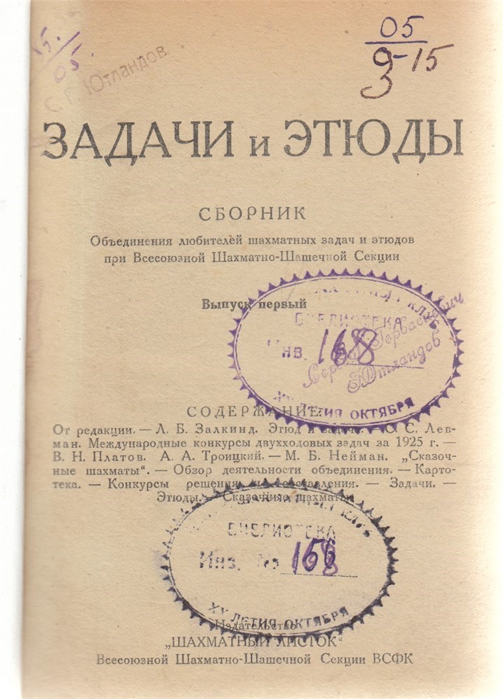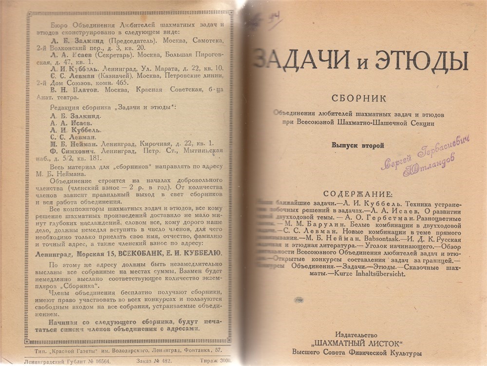 8 magazines were issued. Among editor¨s: Troizky, Kubbel, Herbstman. .