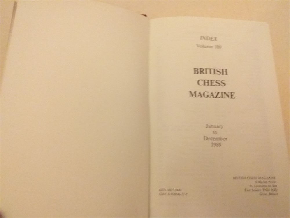 BRITISH CHESS MAGAZINE 1989 - complete bound year View Watchlist >