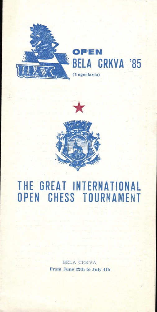 The Great International Open Chess Tournament, BELA CRKVA, 1985.