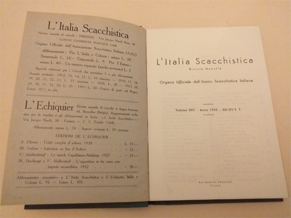 L'ITALIA SCACCHISTICA 1935 - complete bound year View Watchlist >