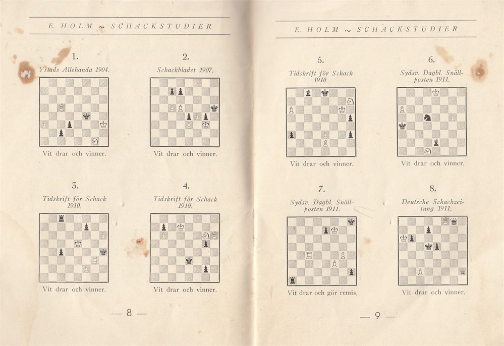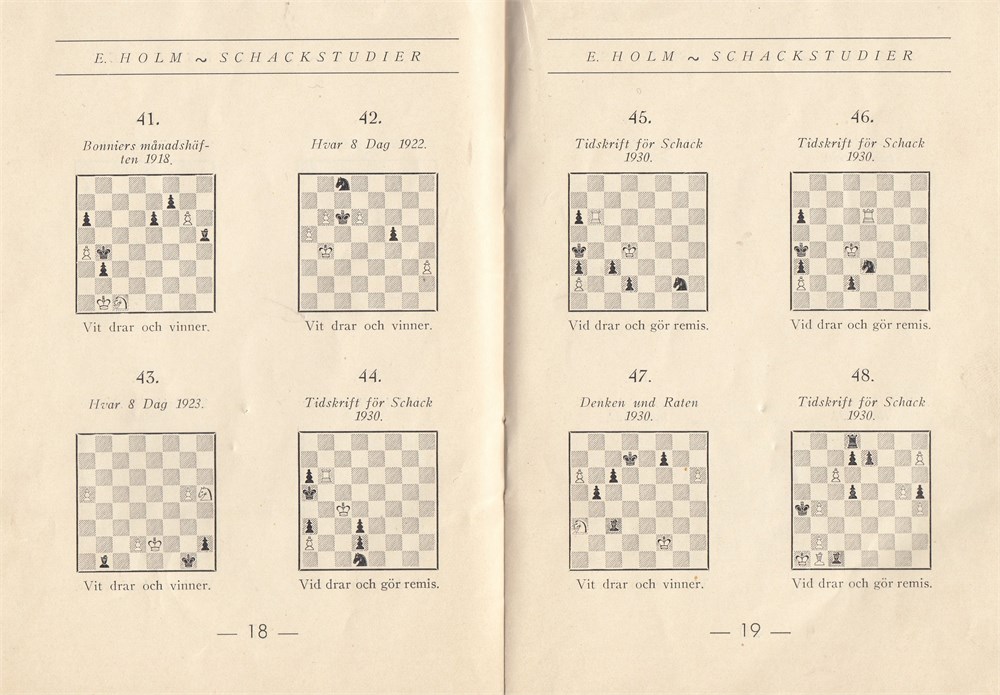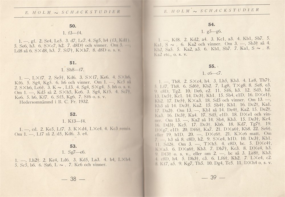 Ernst Holm: 55 schackstudier. 44 white wins and 11 white draws, 1904-1937.