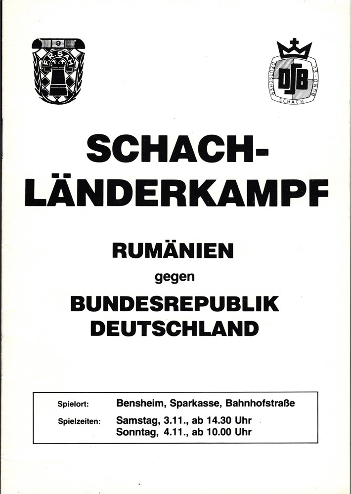 Schach-Landerkampf Rumanien - Bundesrepublik Deutschland, BENSHEIM, 03-04.11.1979.