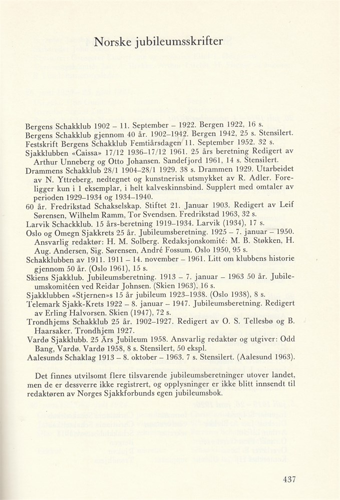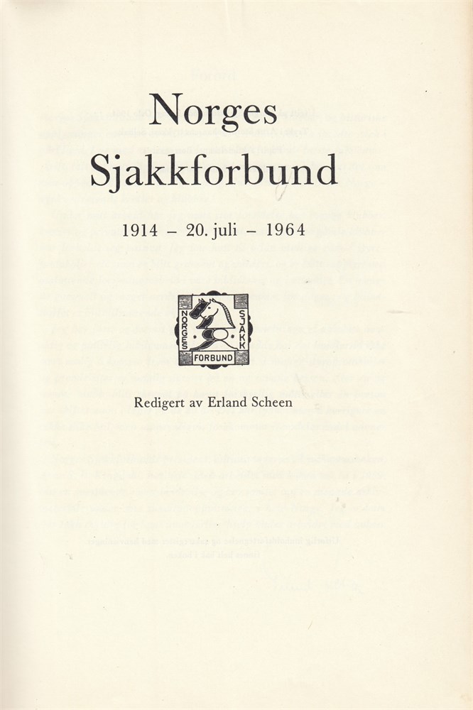 Erland Scheen: Jubilee book of the Norwegian Chess Association 50 years