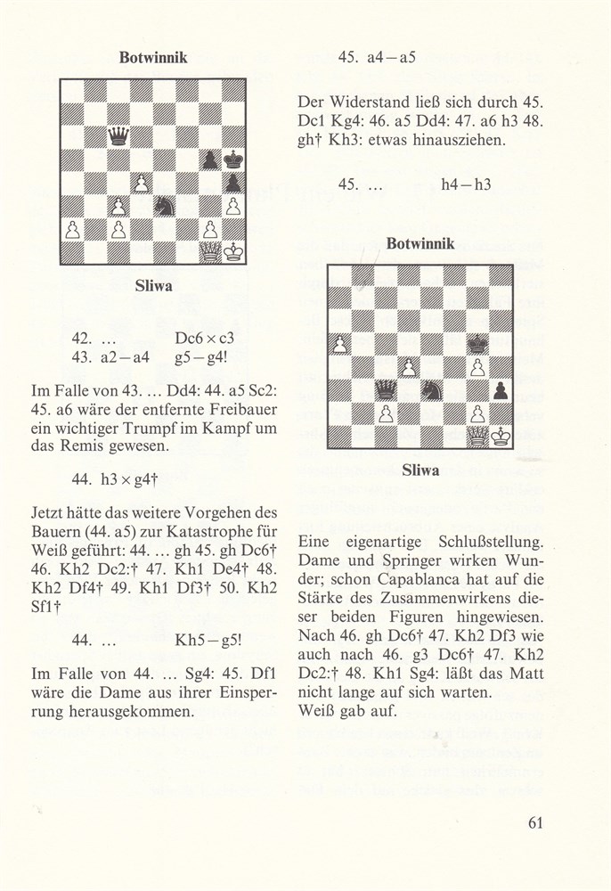 In German. Mikhail Botvinnik writes about his 25 most interesting endgames.