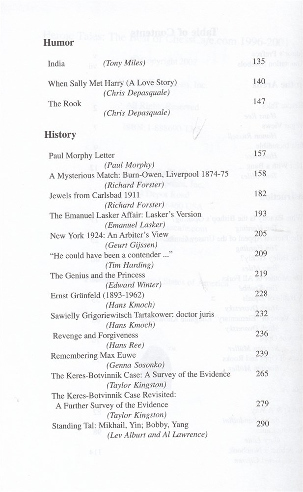 Heroic Tales: The Best of ChessCafe.com 1996-2001. A selection of the best articles on the American homepage chesscafe.com written by top grandmasters and awardwinning journalists