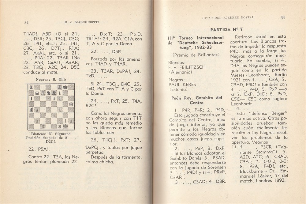 In Spanish. Eduardo Jorge Marchisotti (29.8 1918 - 3.5 1967). 24 annotated games in Spanish descriptive notation. A few diagrams. Games index. Dedication on the page before title page, probably by Marchisotti (see scan).