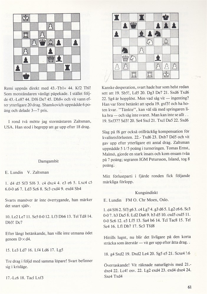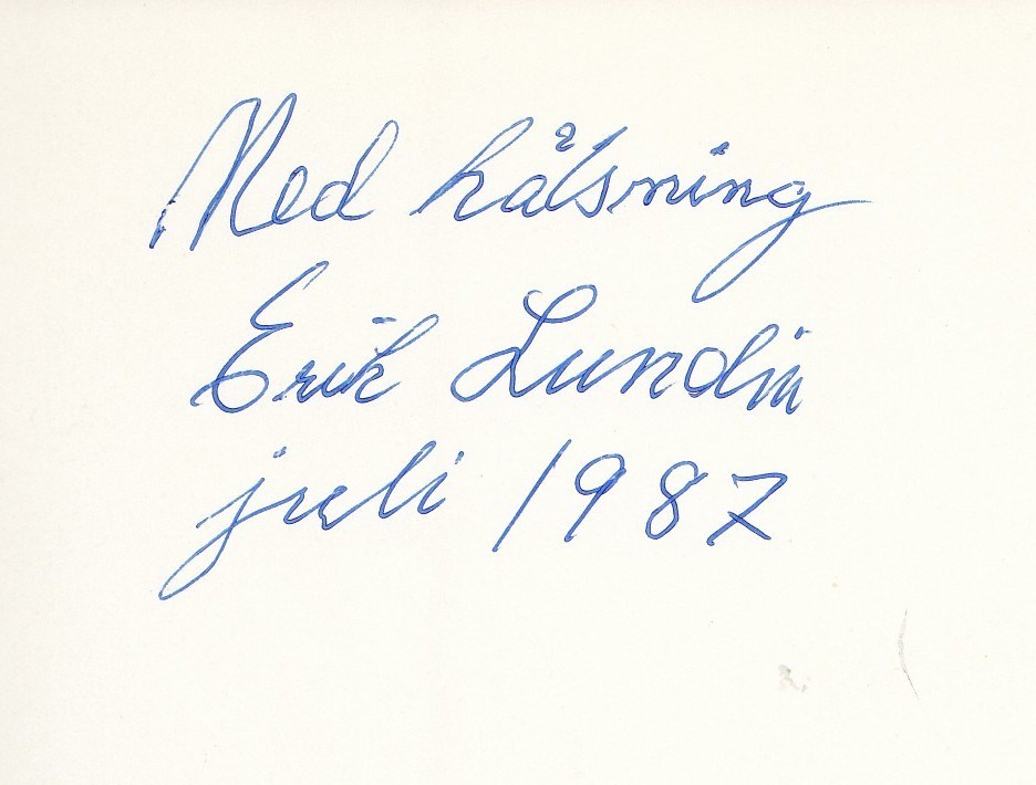 In Swedish. GM Erik Lundin (2.7 1904 - 5.12 1988) and his chess friends from Wasa Chess Club, Swedish Chess Federation and Stockholm Chess Society. Signed by Lundin on the page before title page. Lots of photos, games and game fragments.