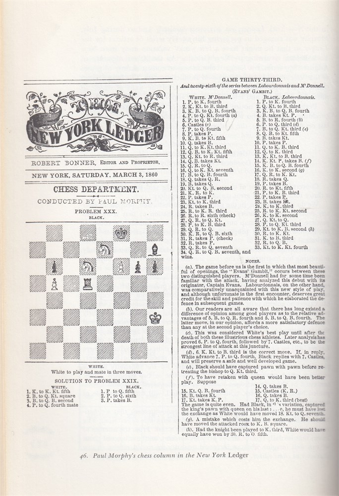 The most impressive biography on Morphy with much on his later life, copies of letters and documents etc..