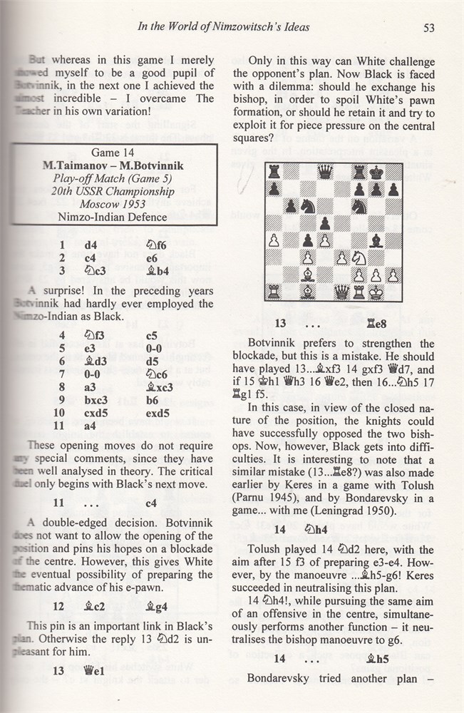 Figurine notation. Mark Taimanov (7.2 1926 - 28.11 2016) presents an annotated selection of the best games from his long and illustrious career. Reveals Taimanov's personal approach to chess. Games grouped by strategical motif to maximise instructional value.