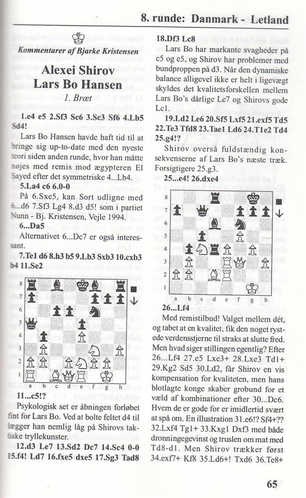 In Danish. Edited by Bjarke Kristensen. Players: Lars Bo Hansen, Erling Mortensen, Peter Heine Nielsen, Sune Berg Hansen, Lars Schandorf & Henrik Danielsen. Nina Højberg. Beatrix Mortensen. Emmat Guindy & Tanya Stewart. All 98 games. mostly annotated.