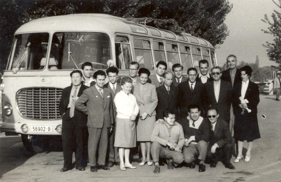 1962, Varna Olympiad (BLG). Group photo of the Romanian delegation, in front of a bus. Photo small size: 8,5x5,5 cm. Condition: good. [PH.02.103]