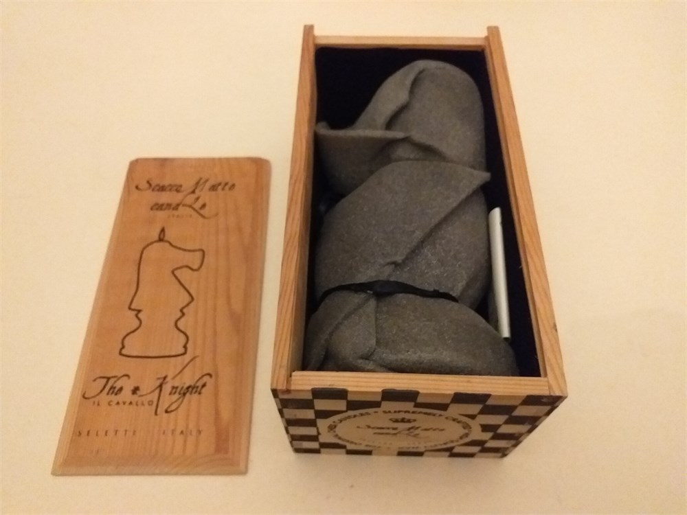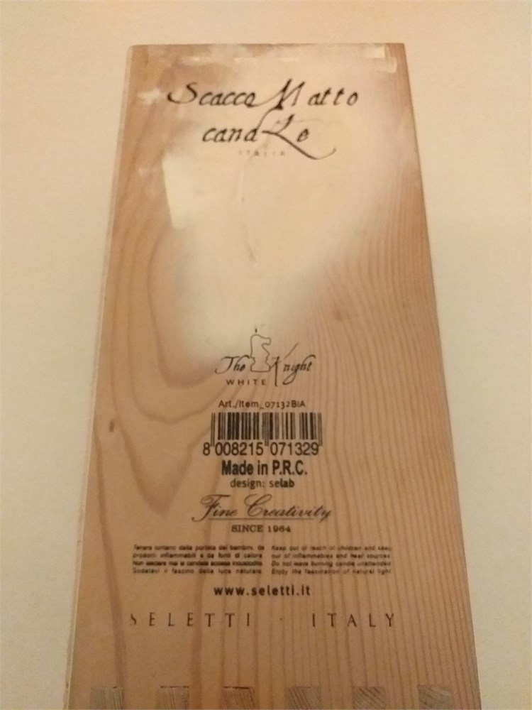 In a marvellous wooden box a giant candle (nearly 25 cm!) representing a white Knight!