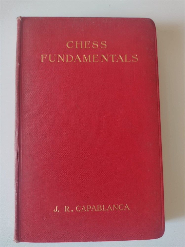 Capablanca, J.R. Chess Fundamentals. London: G. Bell & Sons, 1931. 8vo. Original red gilt-lettered cloth. Binding worn at extremities. Ownership inscription. A solid, unrestored study copy.