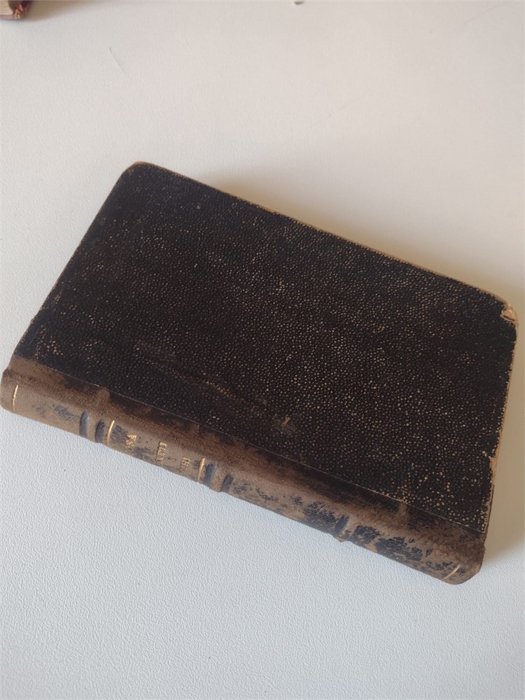 Binding (Exterior): The binding is professionally preserved and structurally sound. Significant rubbing and scuffing to the leather at the spine and corners, consistent with age, which lends the volume a genuine "antique" patina. The gilt on the spine remains partially legible.