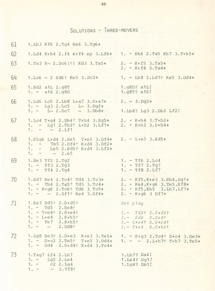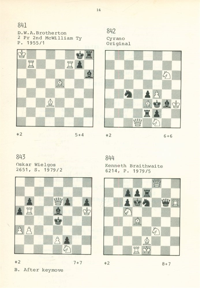 Cyrano was a pseudonym for the Danish problemist Steffen Helweg [1912-1983]. 88 twomovers (841-928), 36 threemovers (61-96) and 108 moremovers (1025-1132) and 18 earlier published problems.