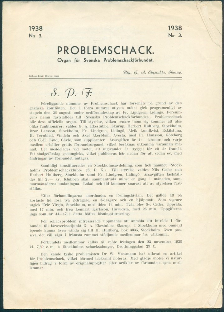 Bonus (Not in L/N): Problemschack No. 3 1938. (Rare Swedish magazine. Some pages have dog ears)