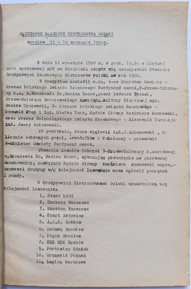 Wroclaw 1960 - Polish Team Chess Championship View Watchlist >