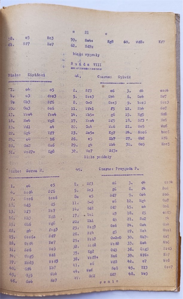 Rare bulletin containing all games from the Polish Championship Semifinal, held in Lublin from December 6 to 17, 1961. The winner was Cylwik, ahead of Gromek and Gawlikowski.