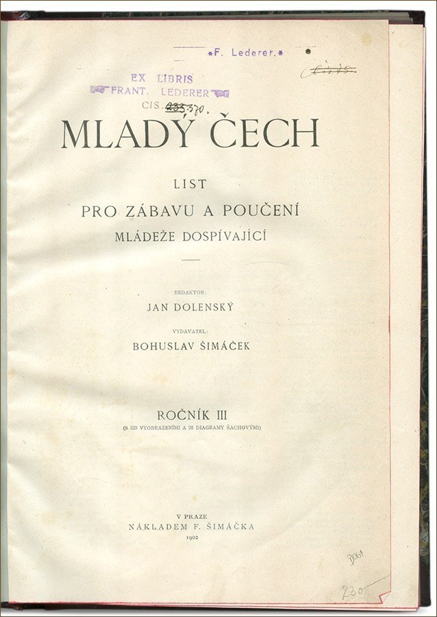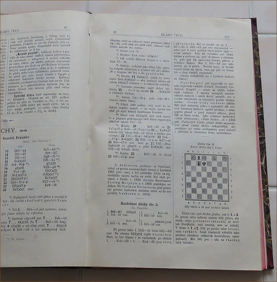 Mlady Cech was published in 1900–1902 (three volumes in total). The present volume (1901/02) is the only one containing a chess column.