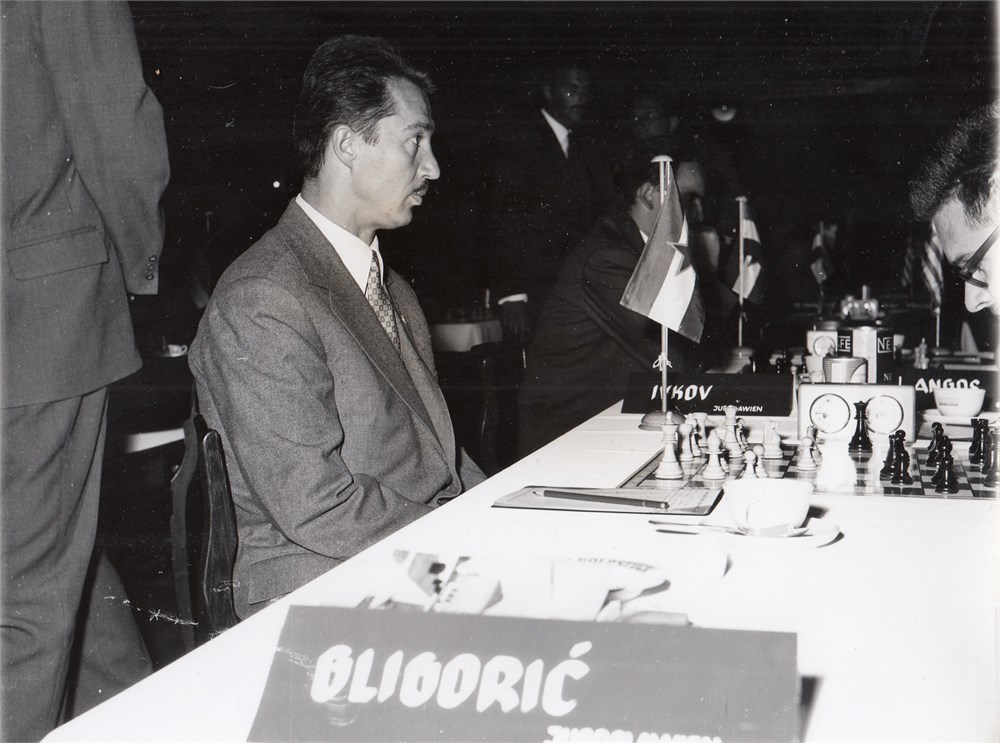 Bayerische Bild gmbh, München. 24 x 18 cm. Svetozar Gligoric (YUG) against Haralambos Syngellakes (GRE), Group 4. Round 1. Condition very good.