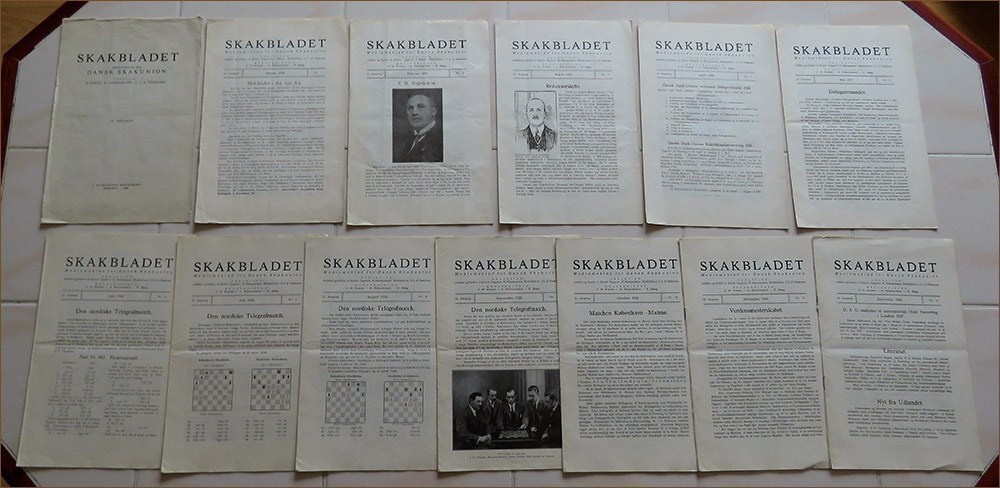 Dansk Skak Union 1926. Loose issues 1-12. (4) = title, index + 150 pages. Size ca 25 cm. Weight 230 grams. LN 6001. In Danish.