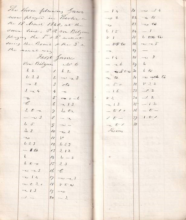 Unusual and unique W. Lewis hand written manuscript of numerous chess games, all the games are in Lewis’s code and the code is presented with the MS. From the Löwenthal chess library and the Rimington-Wilson chess library.