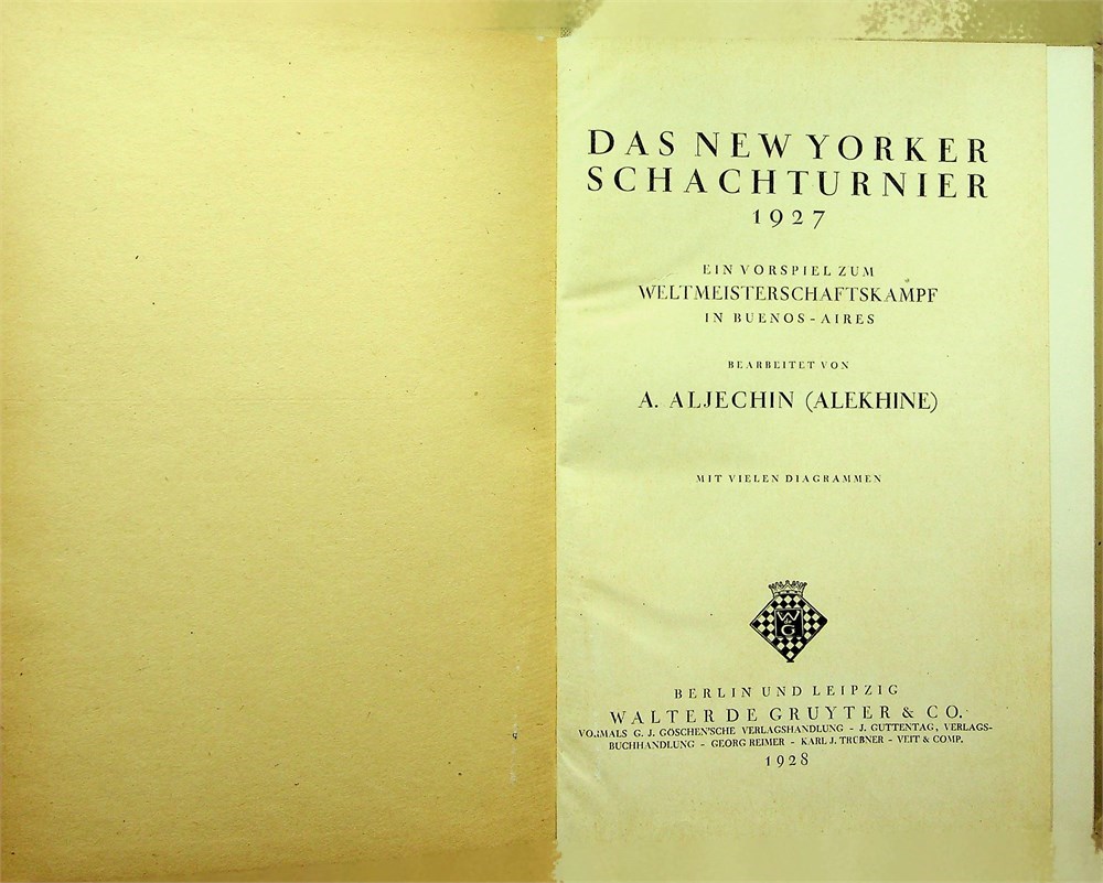 1st Edition. 1928. (4), 176, (8) pp. This item originates from the chess book collection of Zahari Stanchev, (April 27, 1920 - January 27, 1980) from Sofia, Bulgaria. Stanchev was Bulgaria's representative to FIDE in the 1960s, writer of chess books, and international arbiter.