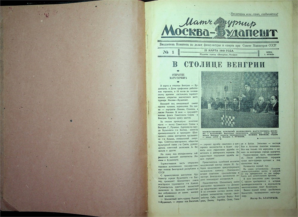 This item originates from the chess book collection of Zahari Stanchev, (April 27, 1920 - January 27, 1980) from Sofia, Bulgaria. Stanchev was Bulgaria's representative to FIDE in the 1960s, writer of chess books, and international arbiter.