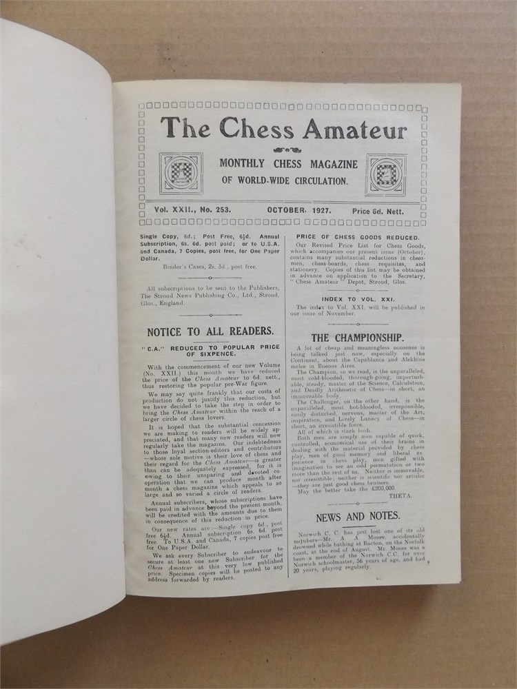 CHESS AMATEUR. Vol.22. Oct.1927 – Sep.1928. View Watchlist >
