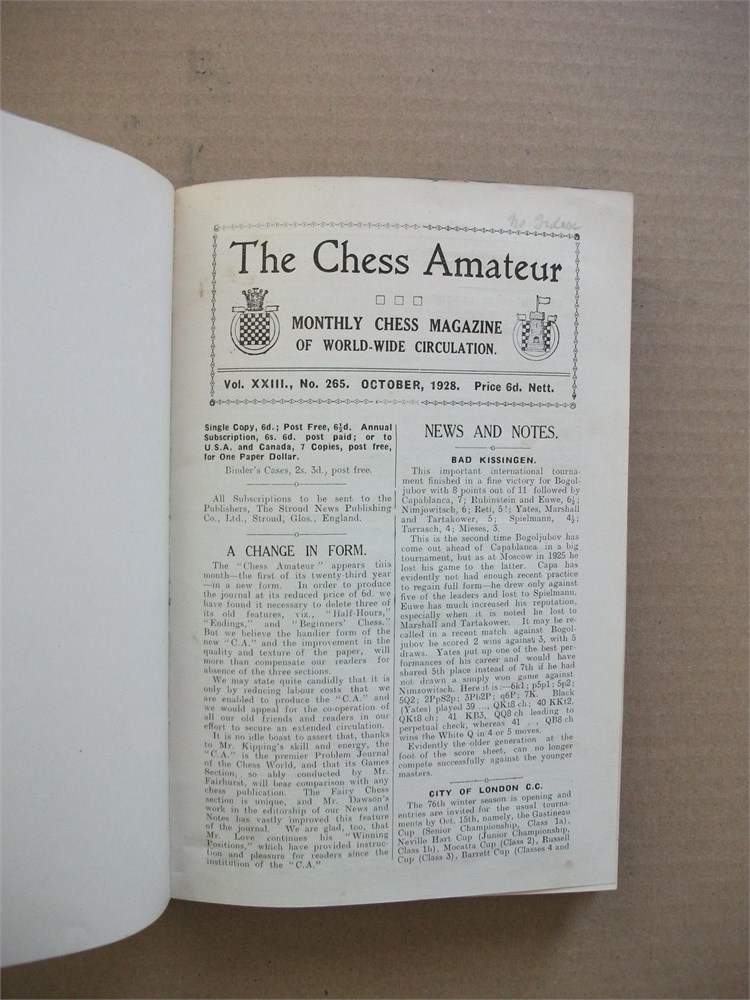 CHESS AMATEUR. Vol.23. Oct.1928 – Sep.1929. View Watchlist >