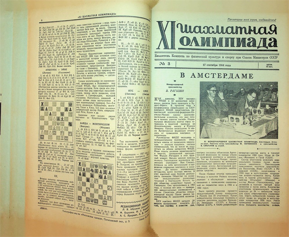 XI Chess Olympiad, Amsterdam 1954 (in Russian) View Watchlist >
