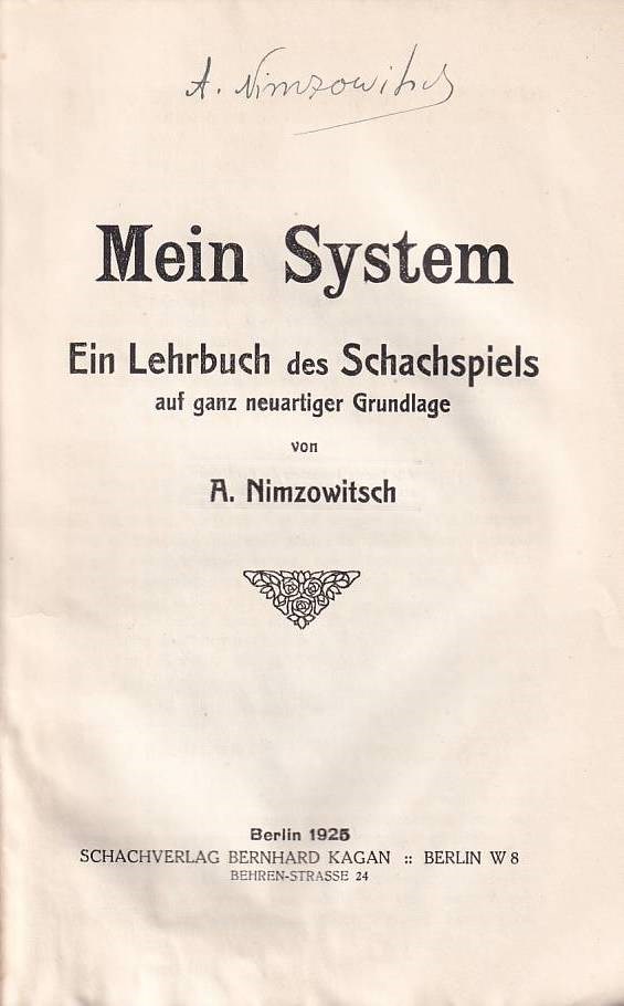Nimzowitsch. Mein System. Signed by Nimzowitsch.
