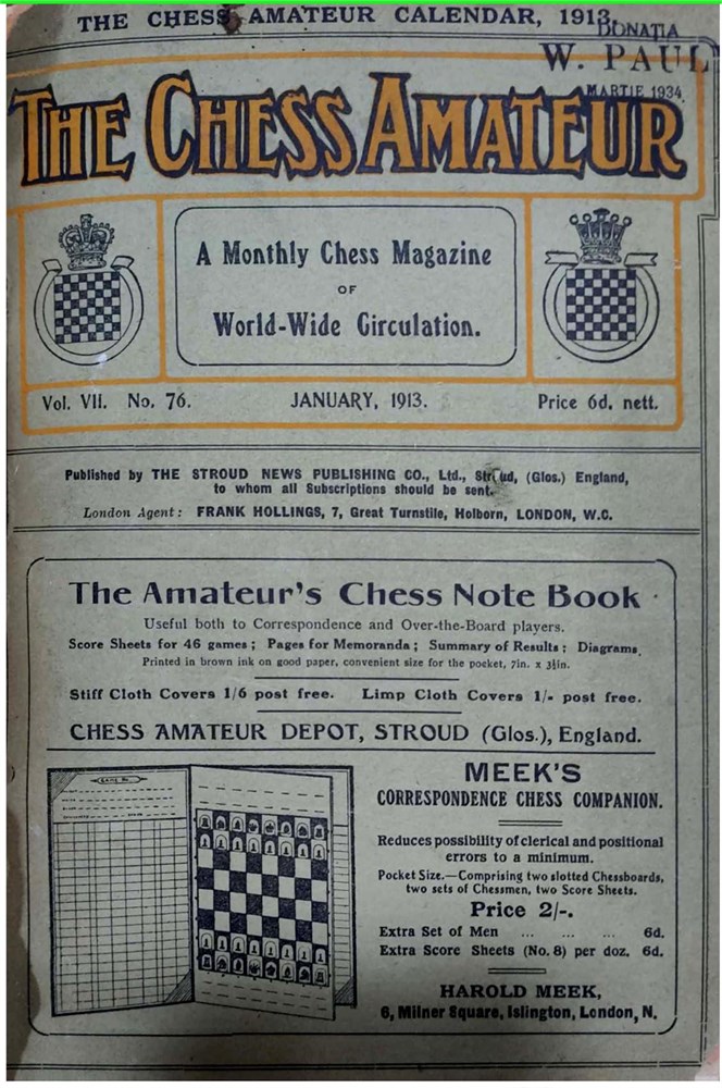 Chess Amateur 1913 - from the library of Wolfgang PAULY View Watchlist >