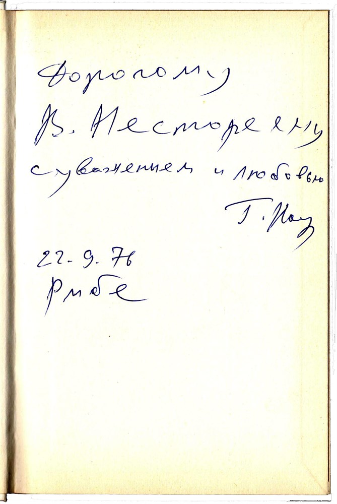Dedication and signature of the author, dated "Ribe, 22.9.76" for Romanian GM-Comp. Virgil Nestorescu.