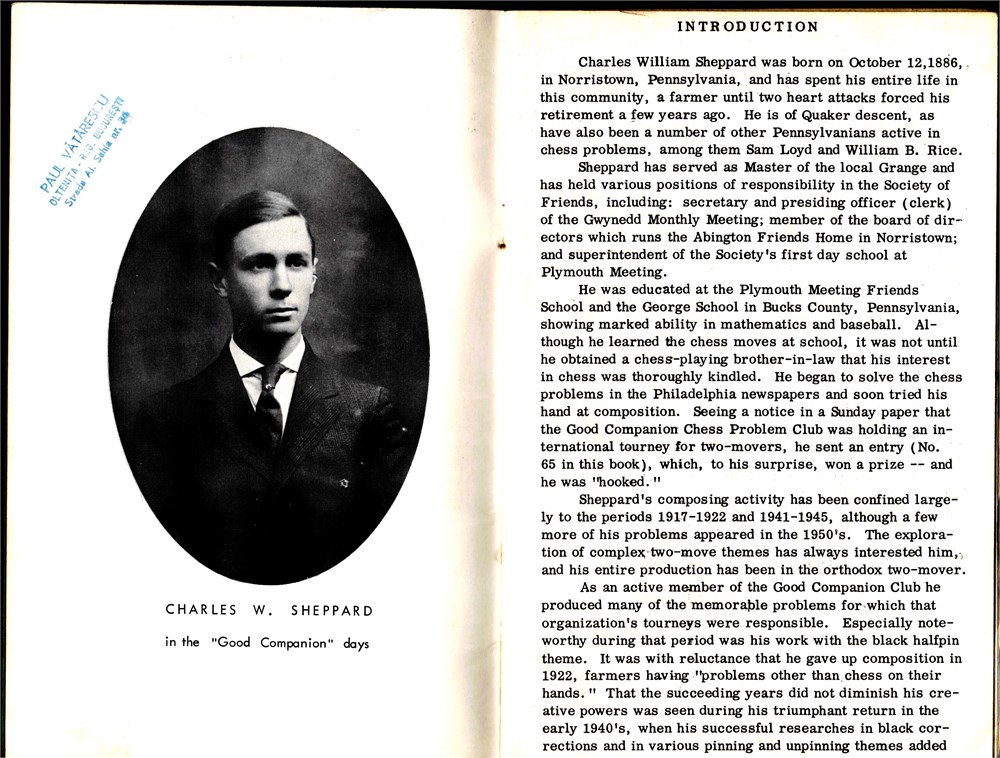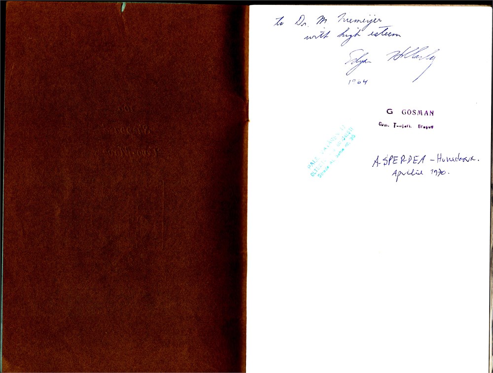 Stamps and signatures: hand-written dedication dated 1964 and signature of E. HOLLADAY to Dr. M[eindert] NIEMEIJER!, several stamps of Paul VATARESCU and stamp of G[heorghe] GOSMAN and signed by A[nton] SPERDEA, all 3 well known Romanian problemists.