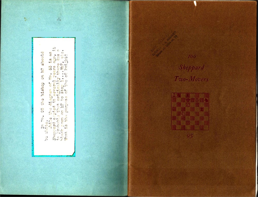 HOLLADAY Edgar - Sheppard two-movers. 100 selected two-move chess problems by Charles W. Sheppard.