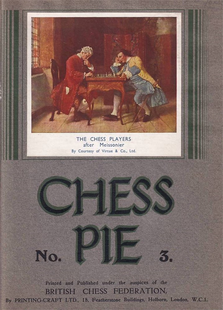 Nottingham 1936. Chess Pie (No. 3). The official souvenir of the International Tournament Nottingham, August 1936. Edited by W. H. Watts. Published under the auspices of the British Chess Federation. London, (1936). With one colored plates, some text illustrations, and diagrams. Volume II, 98 pages. With a color illustration on the front cover. L/N 5538; Betts 25 - 122.