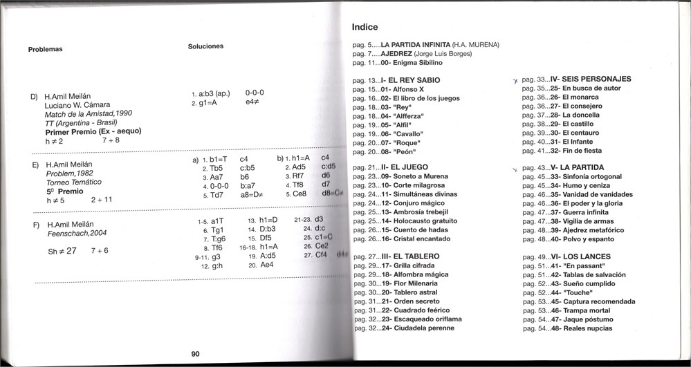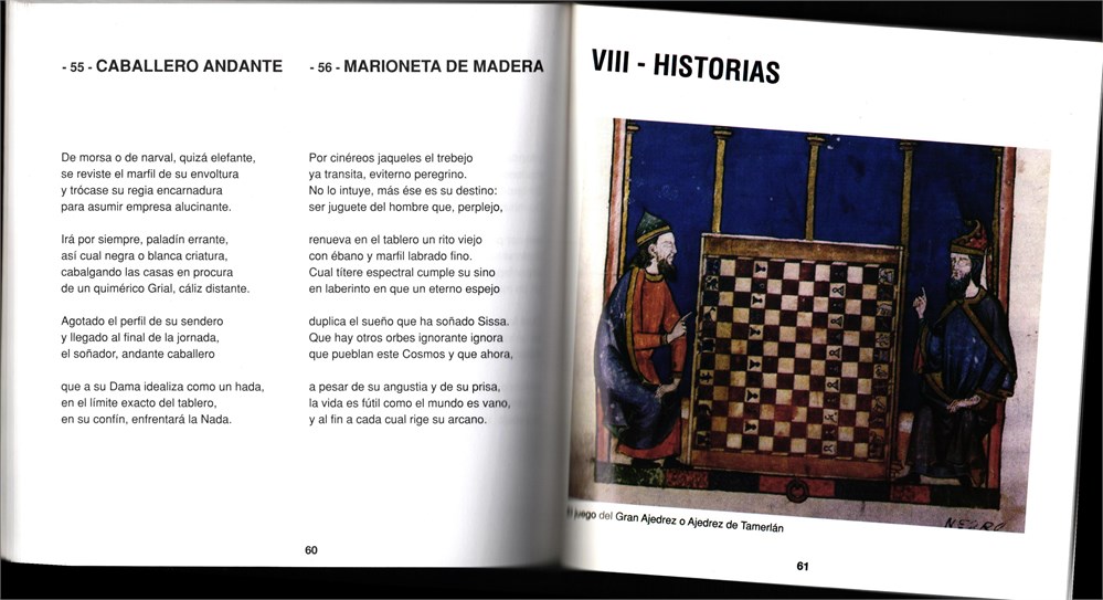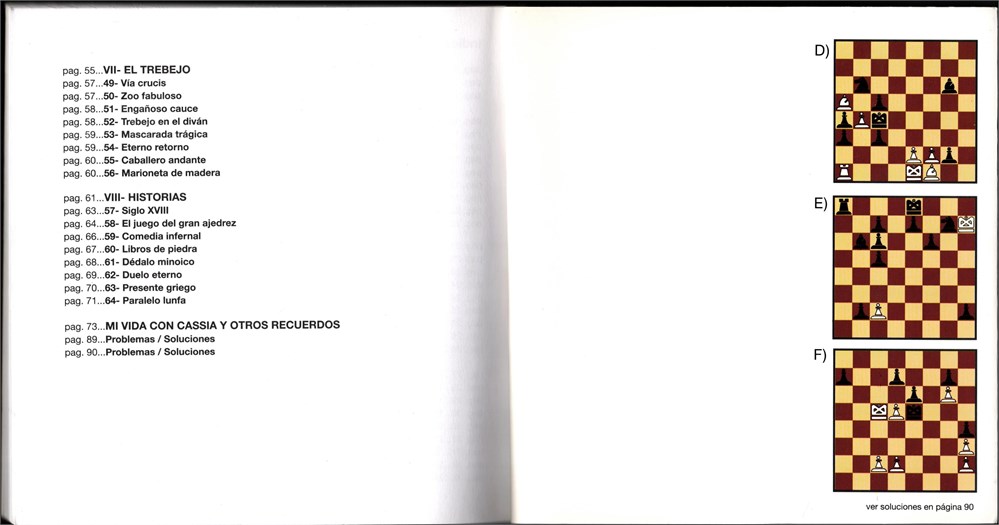 In Spanish, contains poems, 10 colored illustrations, "Mi vida con Caissa ..." - Meilan's autobiography, 6 diagrams (3 on backside of first cover and 3 on backside of last cover) with solutions.