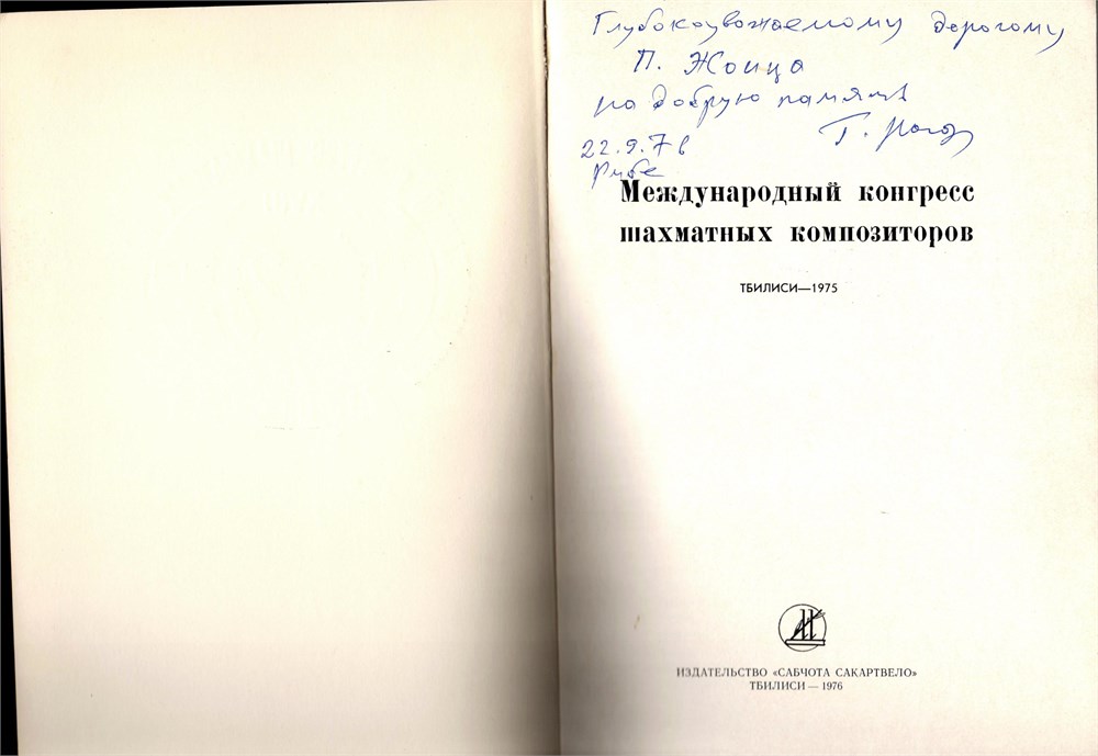 NADAREISHVILI G., LIAPUNOV I., NEIDZE V. - XVIII mejdunarodnyi kongress shahmatnyh kompozitorov, Tbilisi 1975.