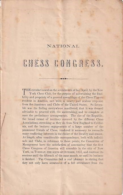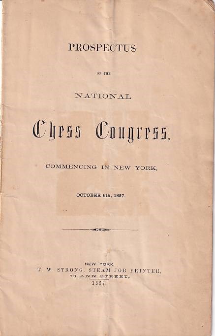 New York 1857. Prospectus of the national chess congres.