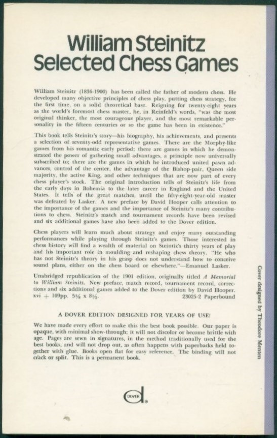 William Steinitz: Selected Chess Games (1974).