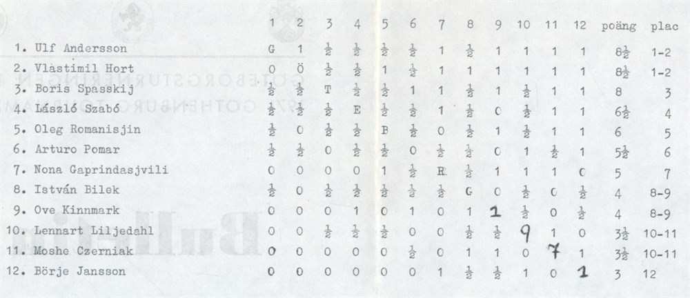 12 bulletins from Göteborgsturneringen 1971 - Gothenburg tournament